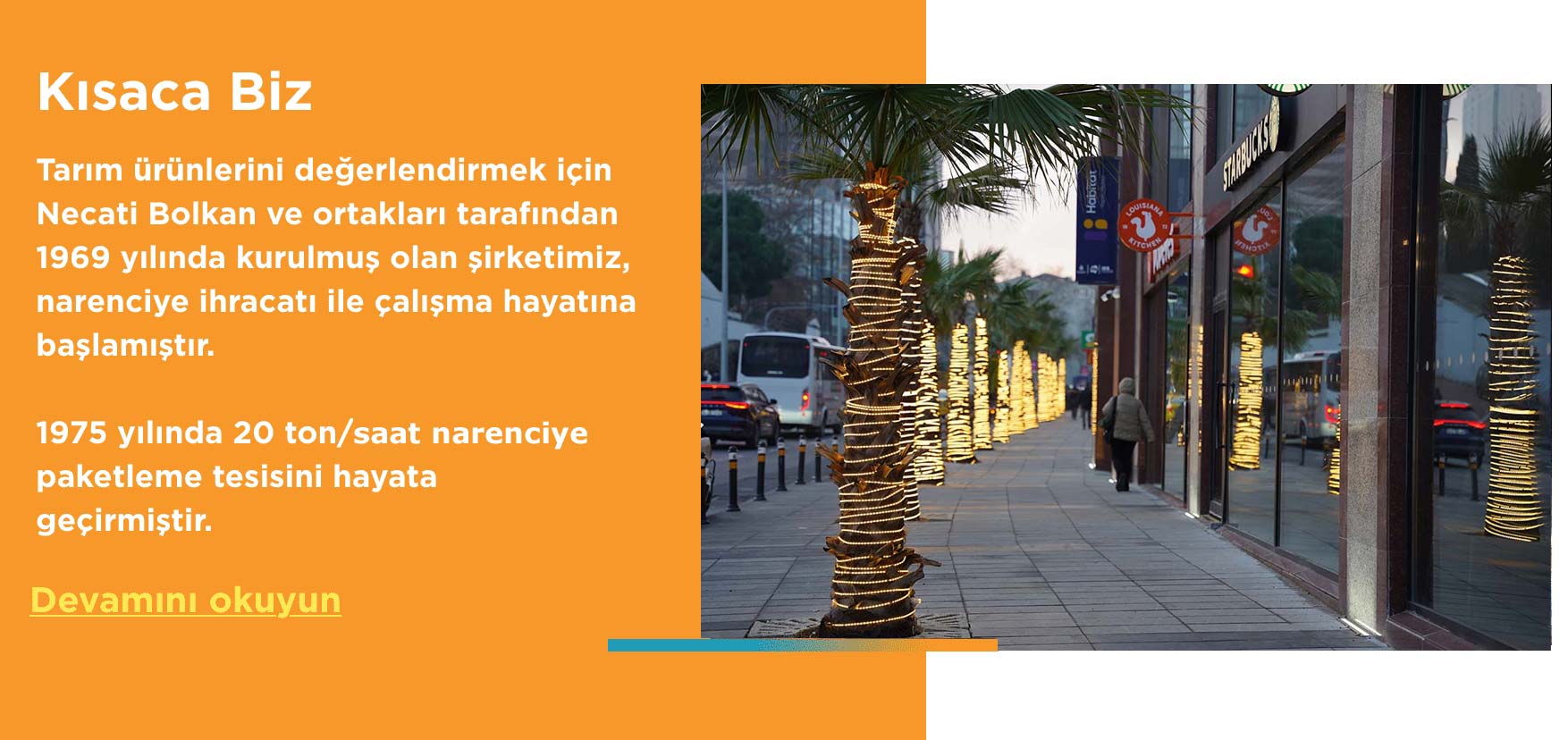 1975 yılında 20 ton/saat narenciye paketleme tesisini hayata geçirmiştir.